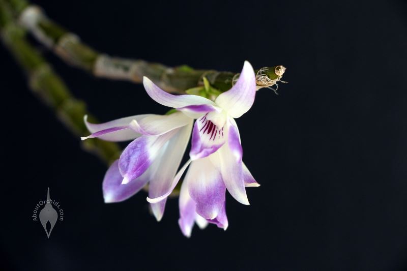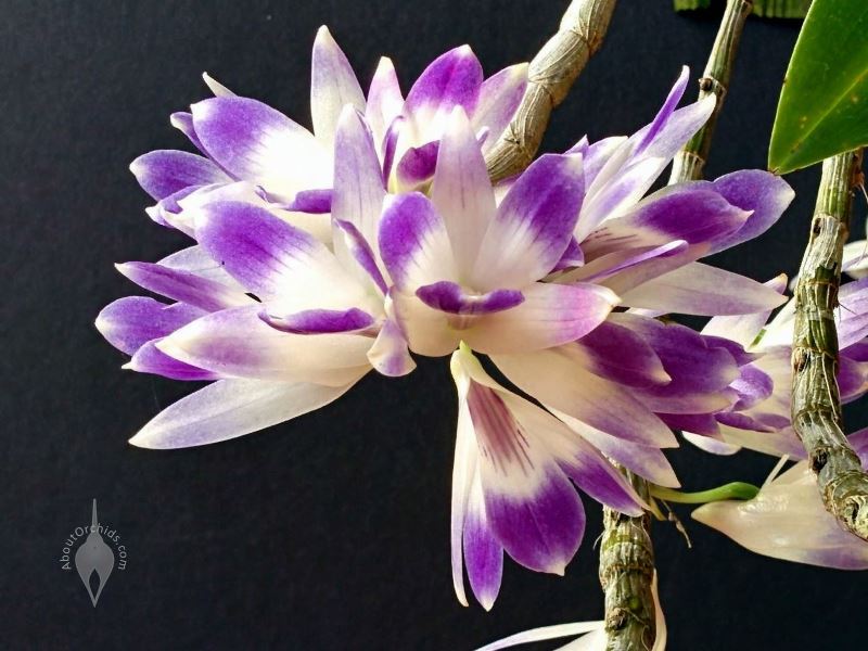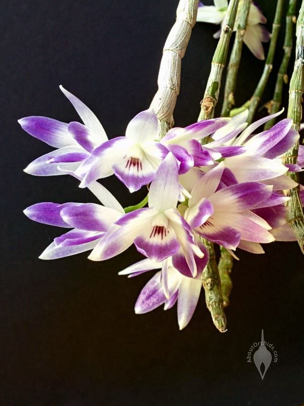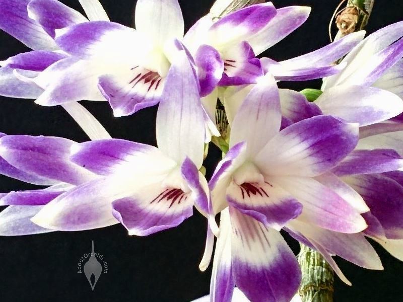 The same heat wave left some of my Masdevallias with sunburned leaves, too. Fortunately, those plants didn’t suffer as much and have survived. This Dendrobium wasn’t so lucky. Native to high elevations in the Philippines, some varieties of this species have striking blue flowers, but mine was more purple than blue. It was named in honor of Queen Victoria.