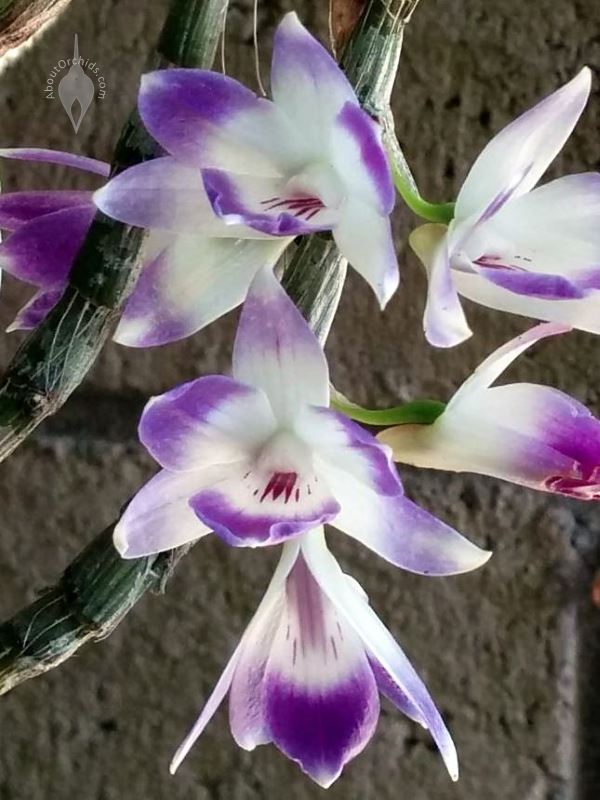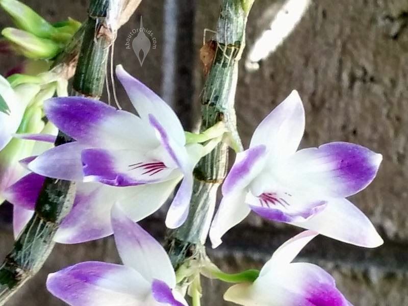 Sadly, I lost this beautiful Dendrobium victoriae-reginae, or Queen Victoria’s Dendrobium, in a heat wave. I blogged about this plant a few years ago. Living outdoors, it’s been a tough orchid and a reliable bloomer, surviving numerous travails to flower again. But during a heat wave that went up to 95°F (35°C) over several days, I mistakenly didn’t water and mist it enough. Since it grew on a mount, not in a pot, it was extra susceptible to drying out, and it fried.