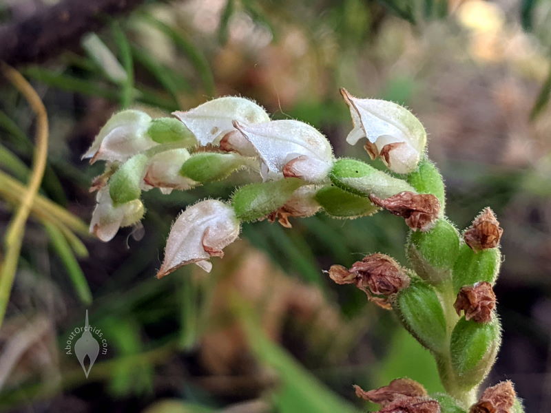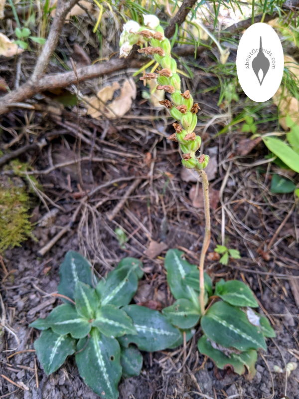 It’s always a pleasure to see orchids growing happily in the wild. During a recent family hike in Colorado’s San Juan National Forest, we spotted a couple of native orchid varieties. The first three rows of photos show the charming Goodyera oblongifolia, or Western Rattlesnake Plaintain. It’s named for its reticulated leaves which resemble snakeskin. Among these small patches of plants, the patterns were most noticeable on the newest leaves. A prominent white stripe remained in the middle of the older leaves. These orchids were finishing up their blooms, with a few small, white flowers at the tops of their spikes. Lots of seedpods were forming below.