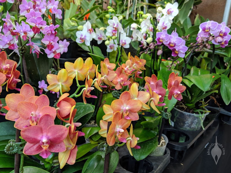 Phalaenopsis Kingcar Bonnie Girls 'DC6063', Phal orchid hybrid flowers, Moth Orchid, Pacific Orchid Expo 2013, San Francisco, CaliforniaPhalaenopsis, Phal orchid hybrid flowers in a variety of colors, Moth Orchids, Orchids in the Park 2019, Golden Gate Park, San Francisco, CaliforniaPhalaenopsis, Phal orchid hybrid flowers, Moth Orchid, Pacific Orchid Expo 2013, San Francisco, California
