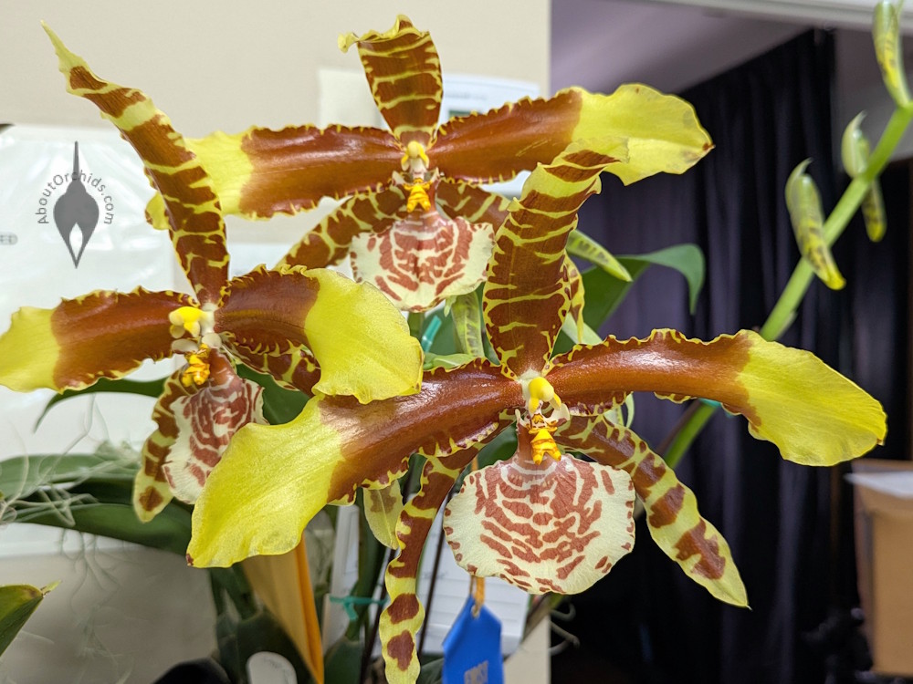 Earlier this month, Dave and I headed to the Peninsula Orchid Society Show in nearby San Mateo. This event has repeatedly shown that small displays can be really spectacular, and this year did not disappoint. It was full of great flowers, unusual species, and new hybrids. The first row of photos above features two species that I don’t think I’ve ever seen in person before. There’s a Chaubardia, an interesting orchid with a strange lip resembling scary purple teeth. It seems appropriate for the month of ghouls and ghosts. In addition, the lovely white and purple Aganisia is in the Zygo family, and an important parent of many purple hybrids. These uncommon orchids with brilliant blooms were pleasant surprises.