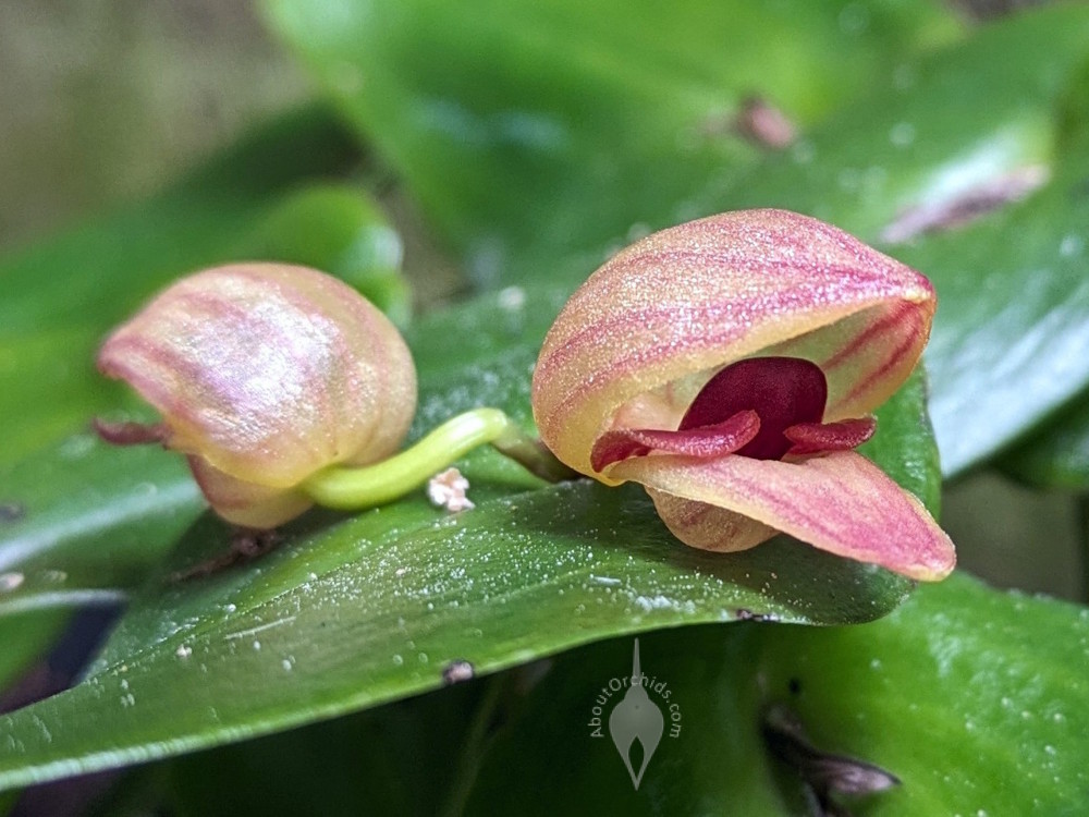Both of these pleurothallids are cool growers from mountain cloud forests. They seem to be less demanding than other finicky species, at least when living outdoors on the foggy northern California coast. They need regular water and high humidity. I repot every few years using small bark and perlite. Despite their size, these mini orchids leave a big impression.