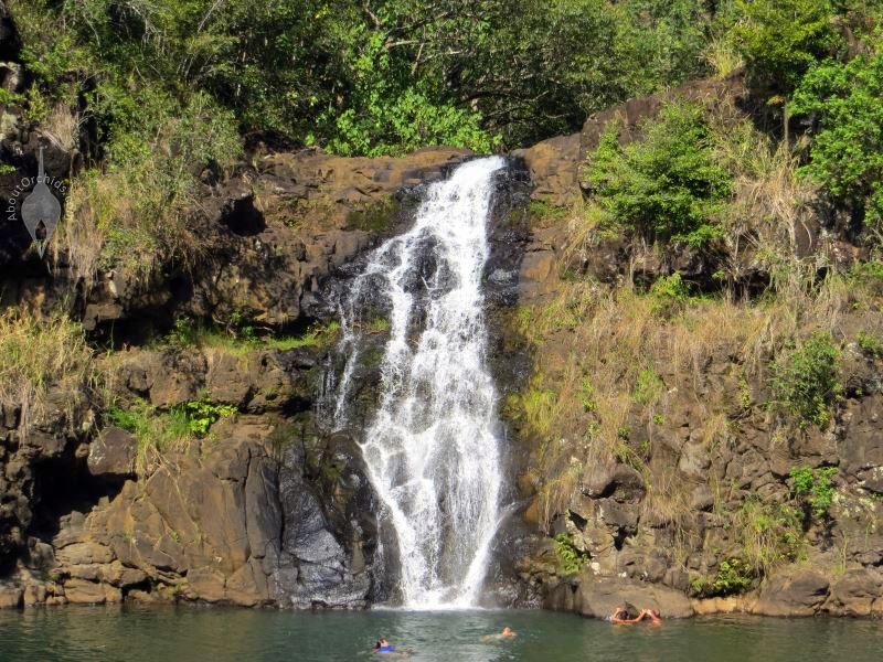 Waimea Valley includes 41 garden zones with over 5000 types of tropical plants from around the world. It preserves many endangered native Hawaiian plants and animals, and has Hawaiian cultural and archeological sites, too. Some of Waimea Valley’s stone terraces and walls date back centuries. We did see lots of orchid plants throughout the gardens, but we didn’t find any in bloom in early March.